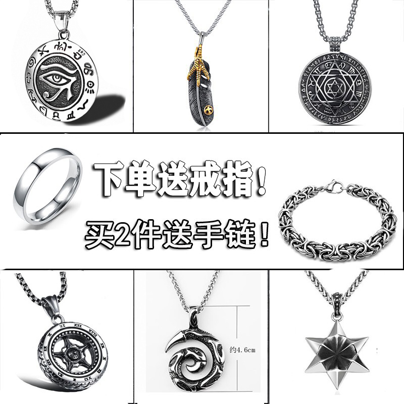 钛钢项链男士项坠个性潮人挂件饰品韩版学生简约六芒星吊坠嘻哈男