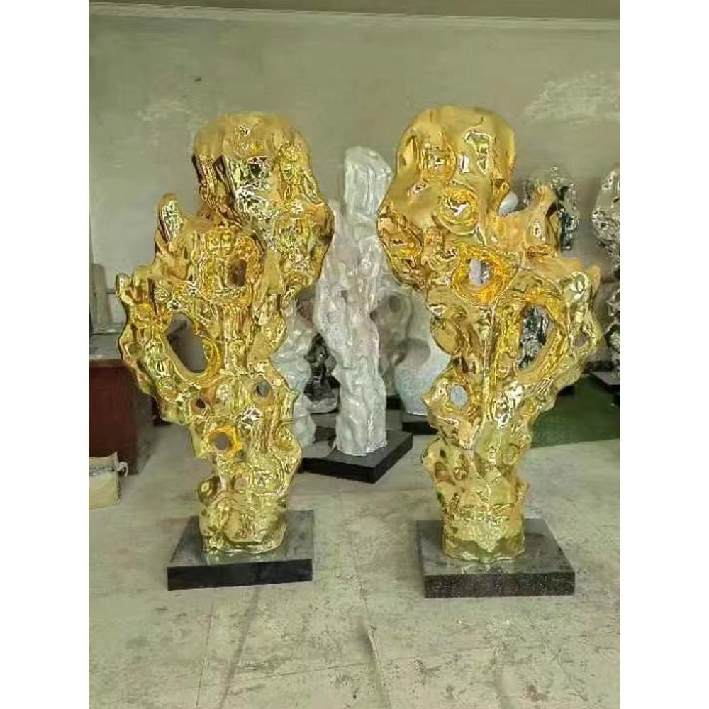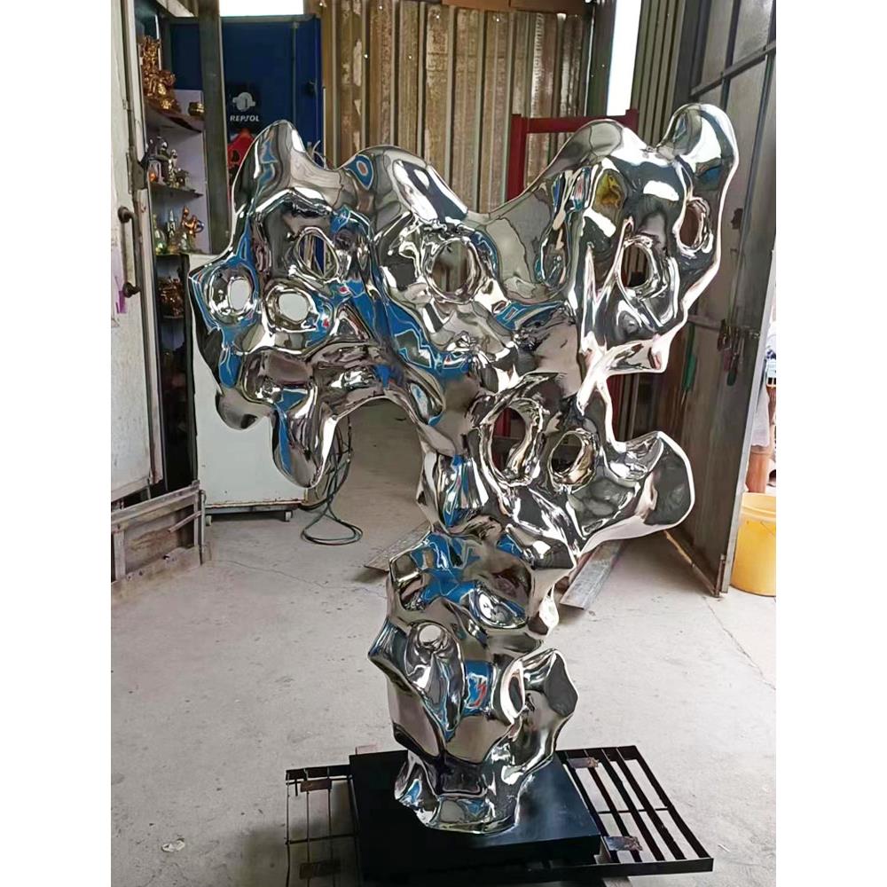 太湖石饰品玻璃纤维不锈钢人造雕塑金属景观假山户外镜子抽象定制