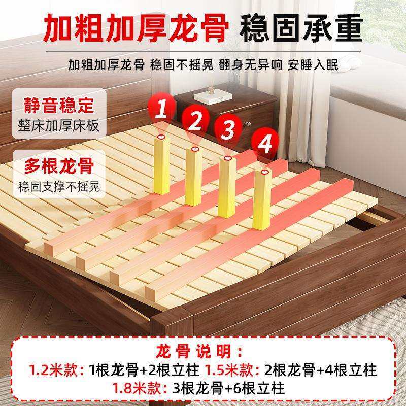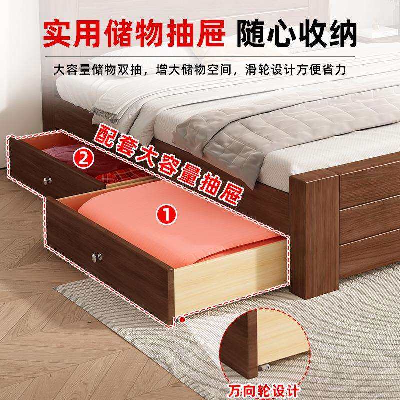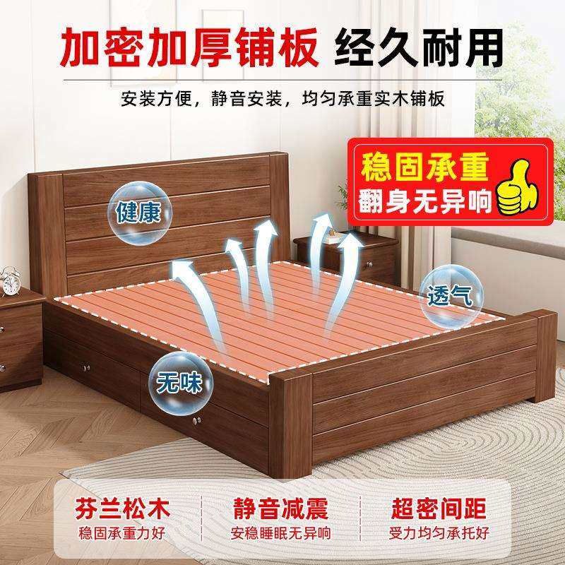 全实木新中式床1米8双人床一米五卧室家用出租房床架1.2米单人T&