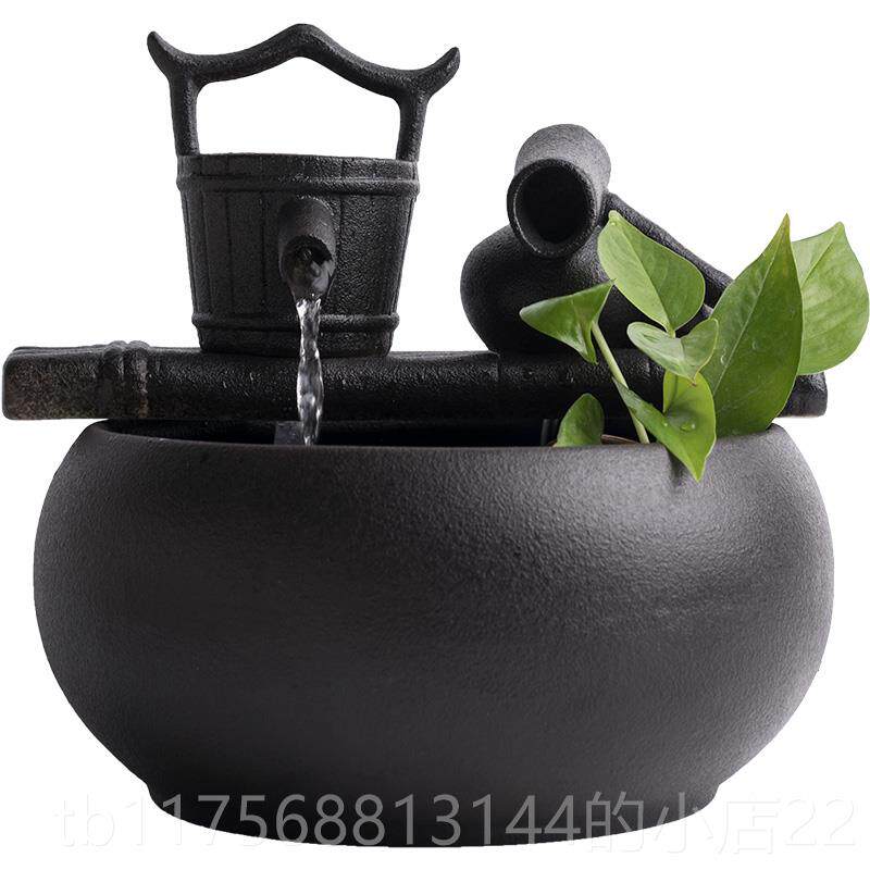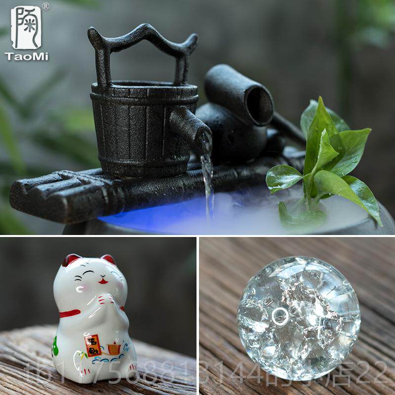 正品陶迷家用加陶瓷流水器客厅泉湿桌器鱼缸面办公室风水喷招财摆