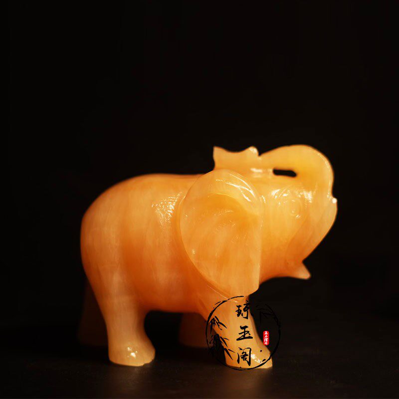天然米黄玉大象摆饰一对吸水招财客厅玄关办公室家居送礼装饰品