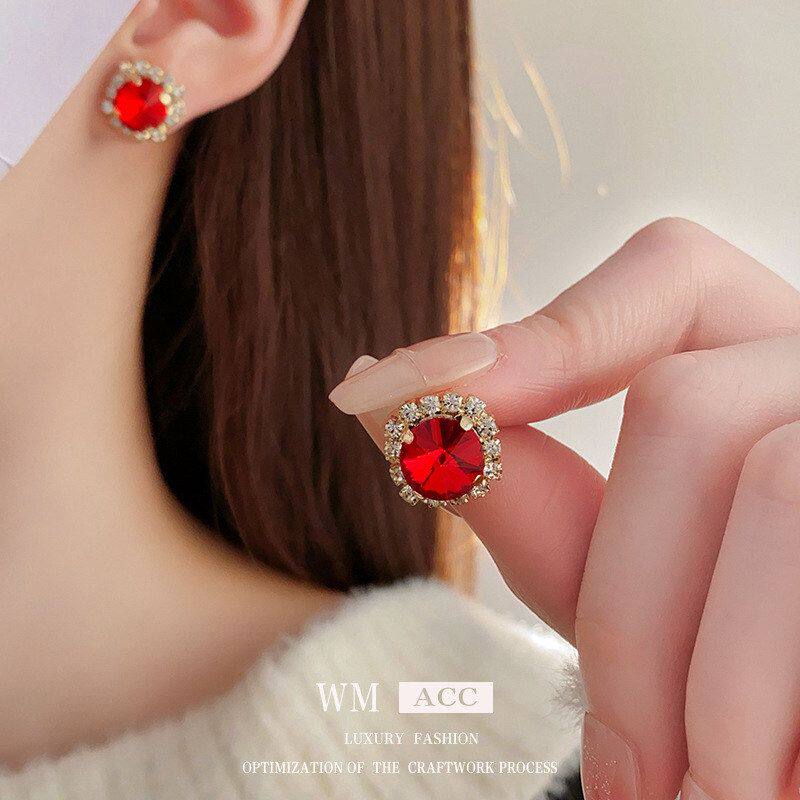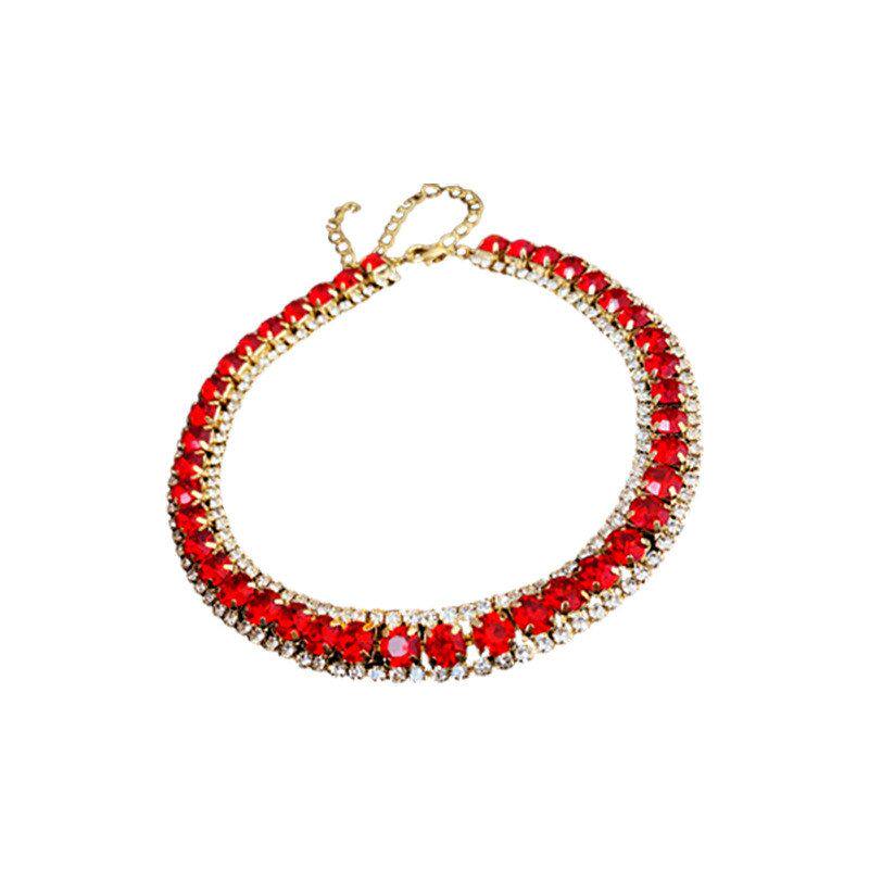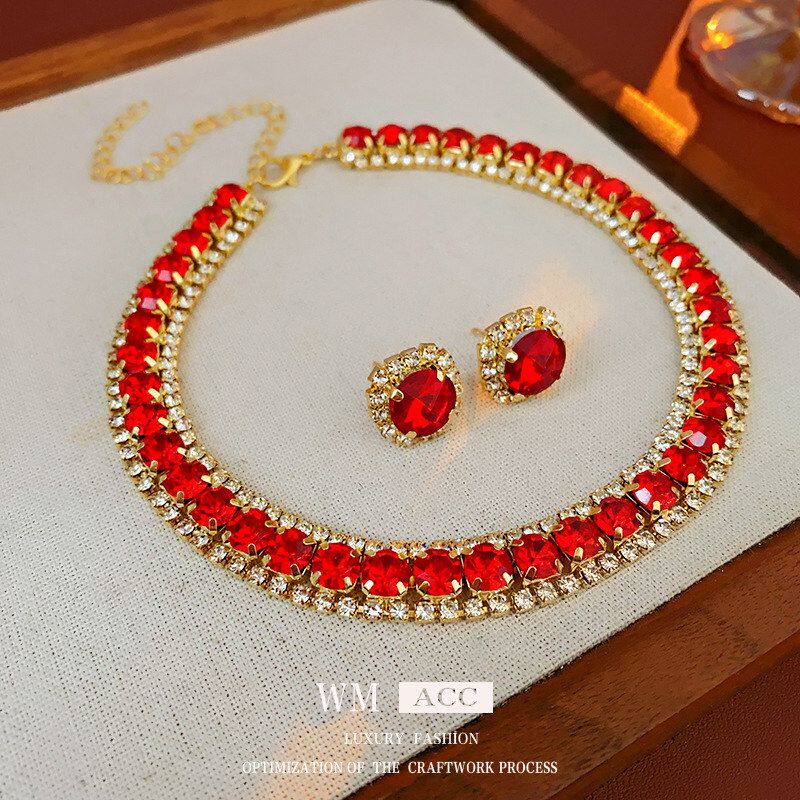 红色高级感法式厂家批发气质项链轻奢链方形项饰锁骨镶钻时尚精致