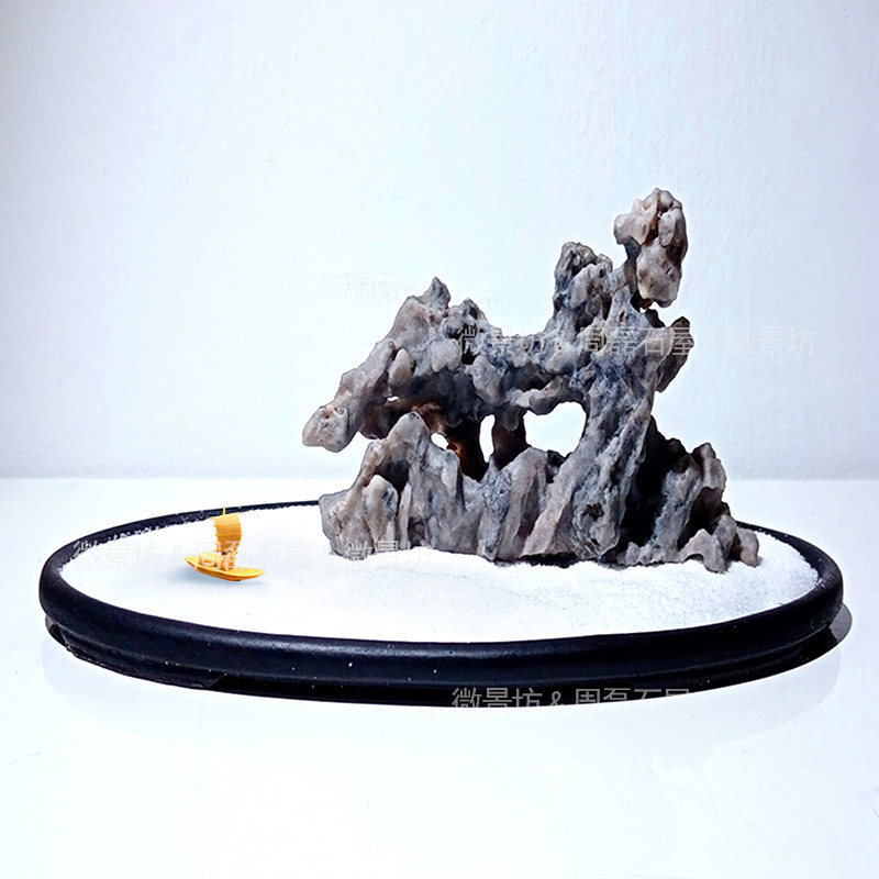 仿古小船奇石假山盆景鱼缸沙盘枯山水微景观造景树脂小摆件