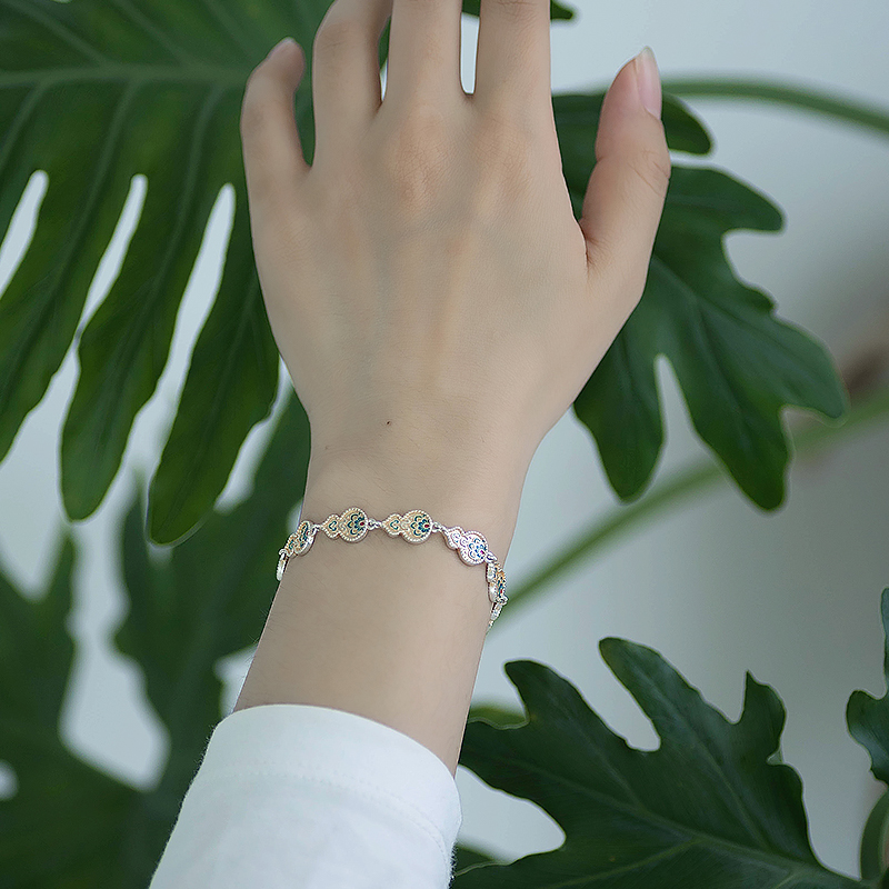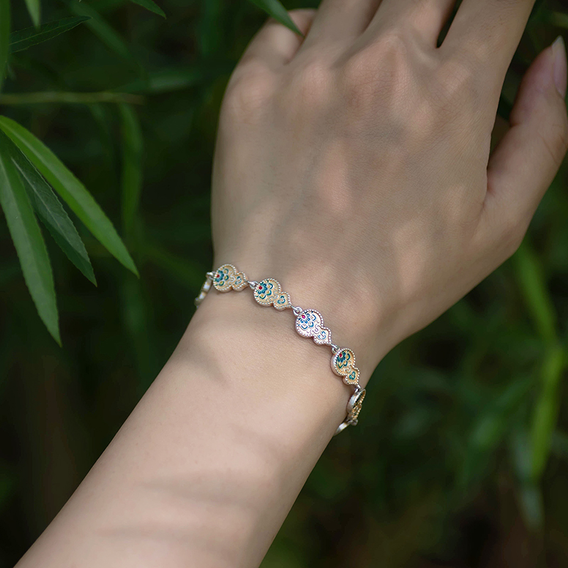 凭澜 足银9999描金珐琅彩葫芦手链国风新中式轻奢宝相花520礼物