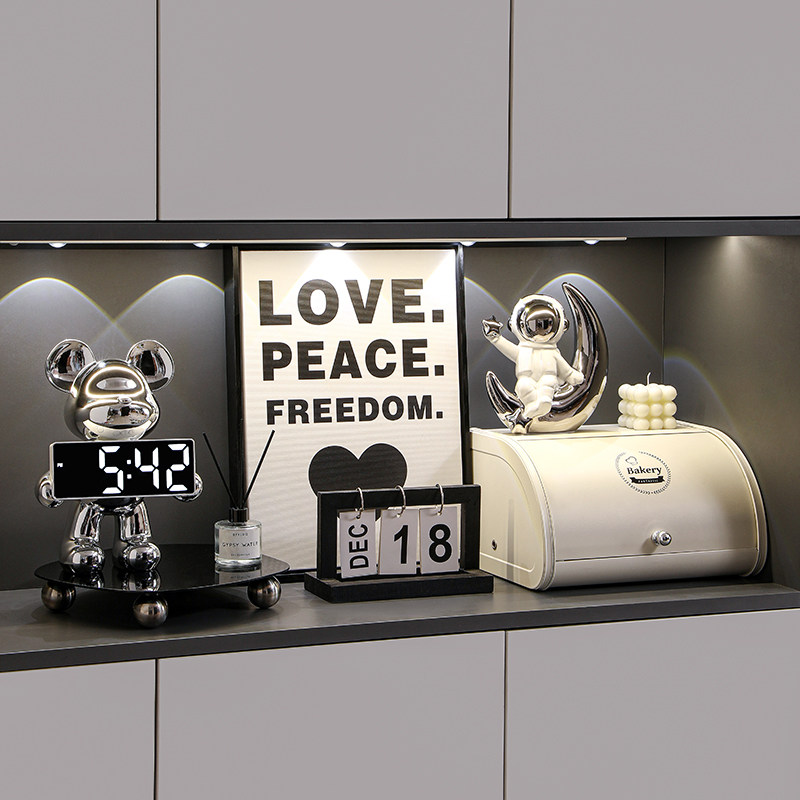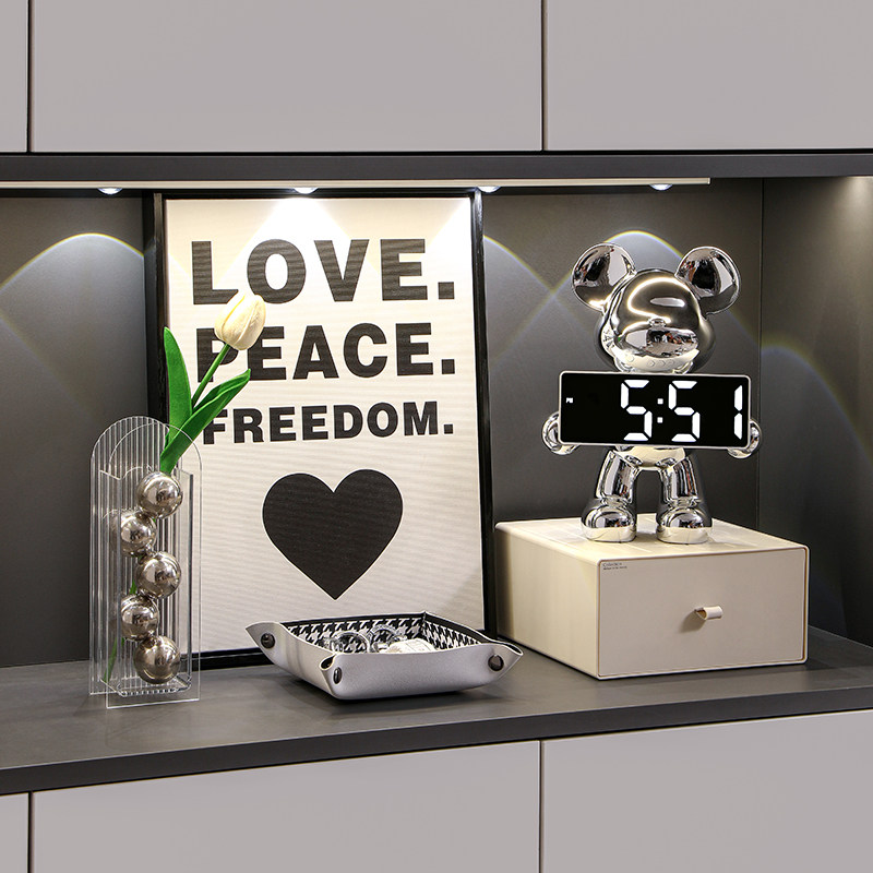 轻奢暴力熊时钟摆件客厅玄关桌面高档家居钥匙收纳装饰品乔迁新居