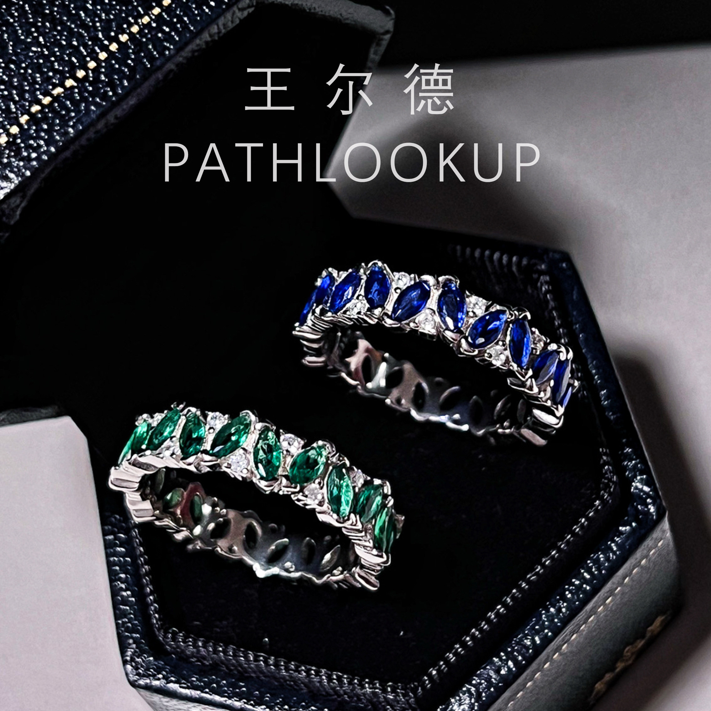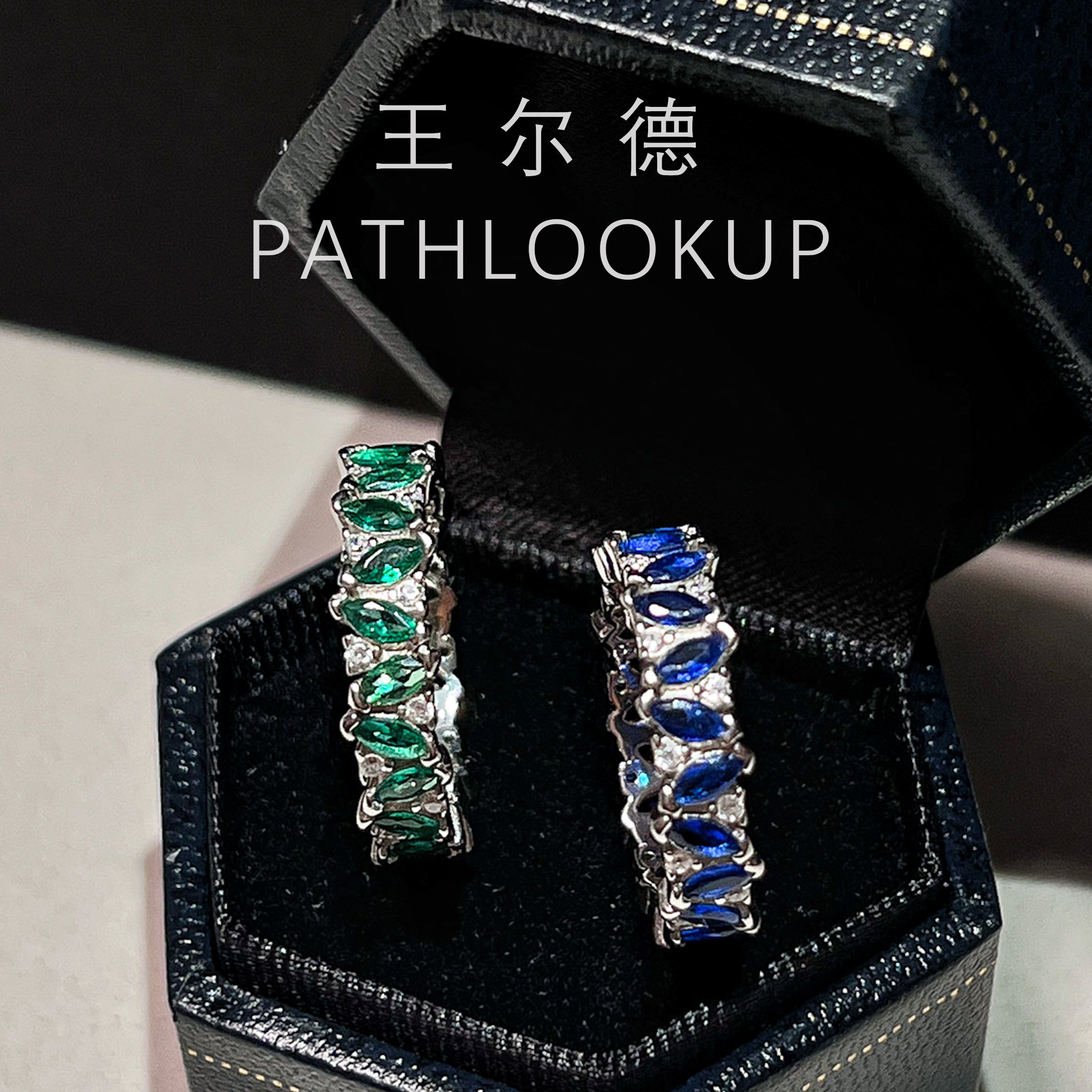 纯银蓝宝石排戒小众轻奢祖母绿高碳钻石戒指S925不掉色百搭食指戒