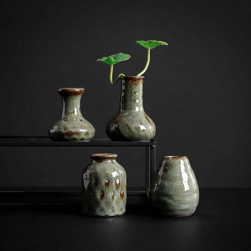 中式陶瓷花瓶花器桌面小展示架茶桌复古插花水培植物铜钱草