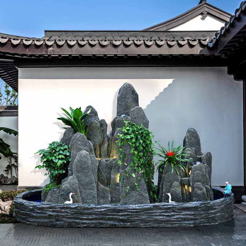 庭院大型假山流水喷泉阳台入户花园布置景观装饰循环水养鱼池造景