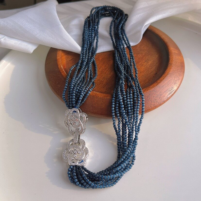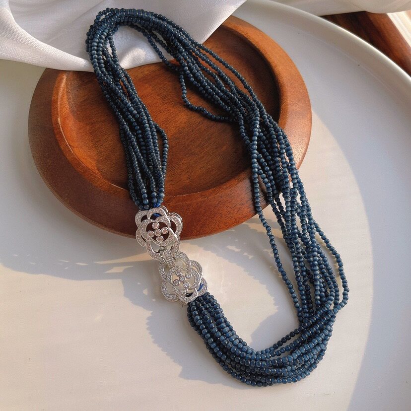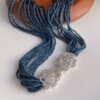 冷艳蓝灰色猫眼石十层晚妆链锁骨链时尚霸气chocker项链