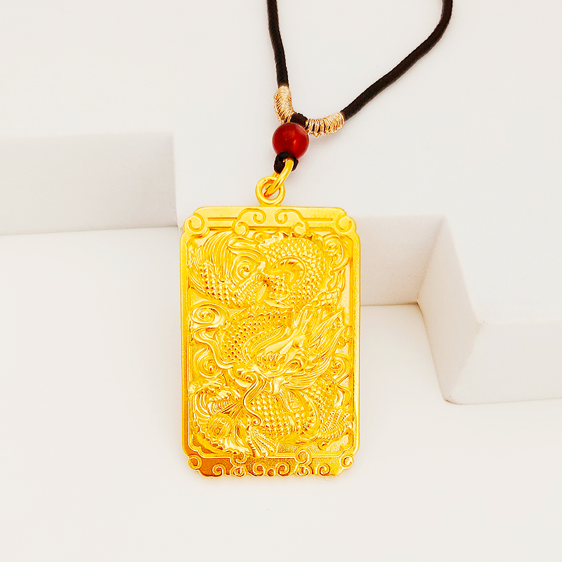 金包银平安无事牌吊坠古法999足黄包金男千手观音关公貔貅大方牌
