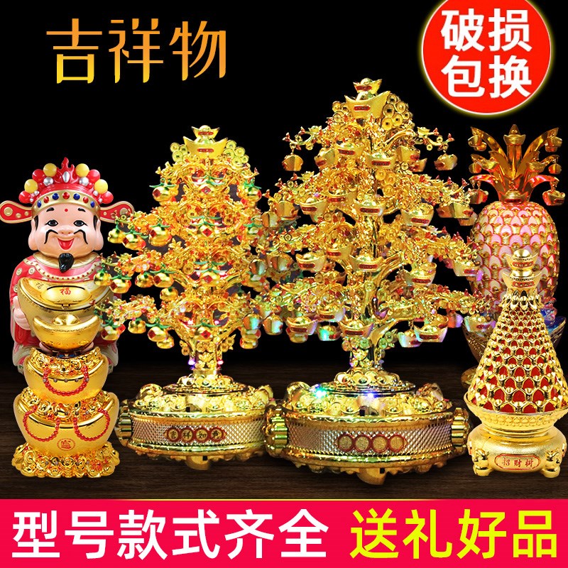 金菠萝摆件 招财摇钱树大号 元宝招财树带灯光可旋转聚宝盆装饰品