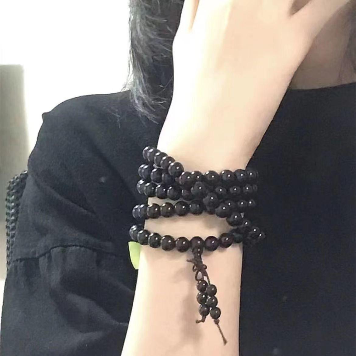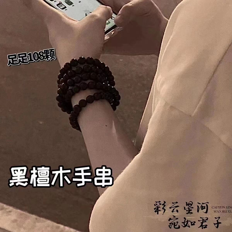 黑檀木手串男款新中式小众古风108颗木质佛珠手持国风潮男士配饰