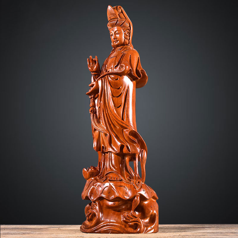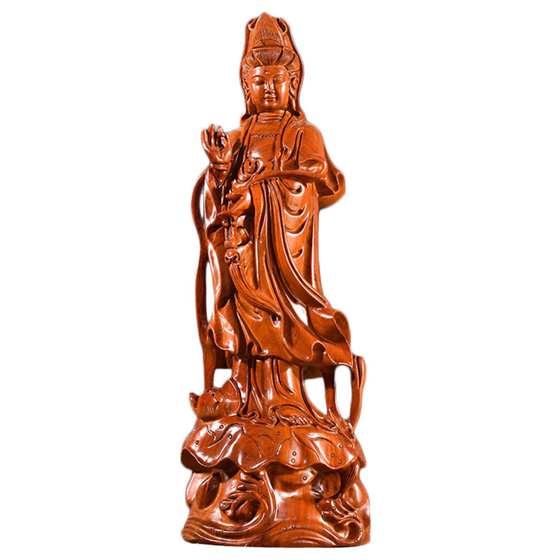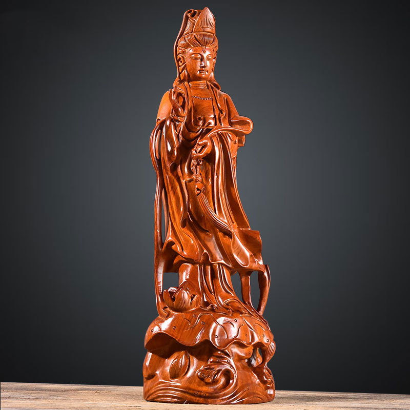 花梨木雕如意观音菩萨佛像摆件如意观音红木家居饰品供奉工艺礼品