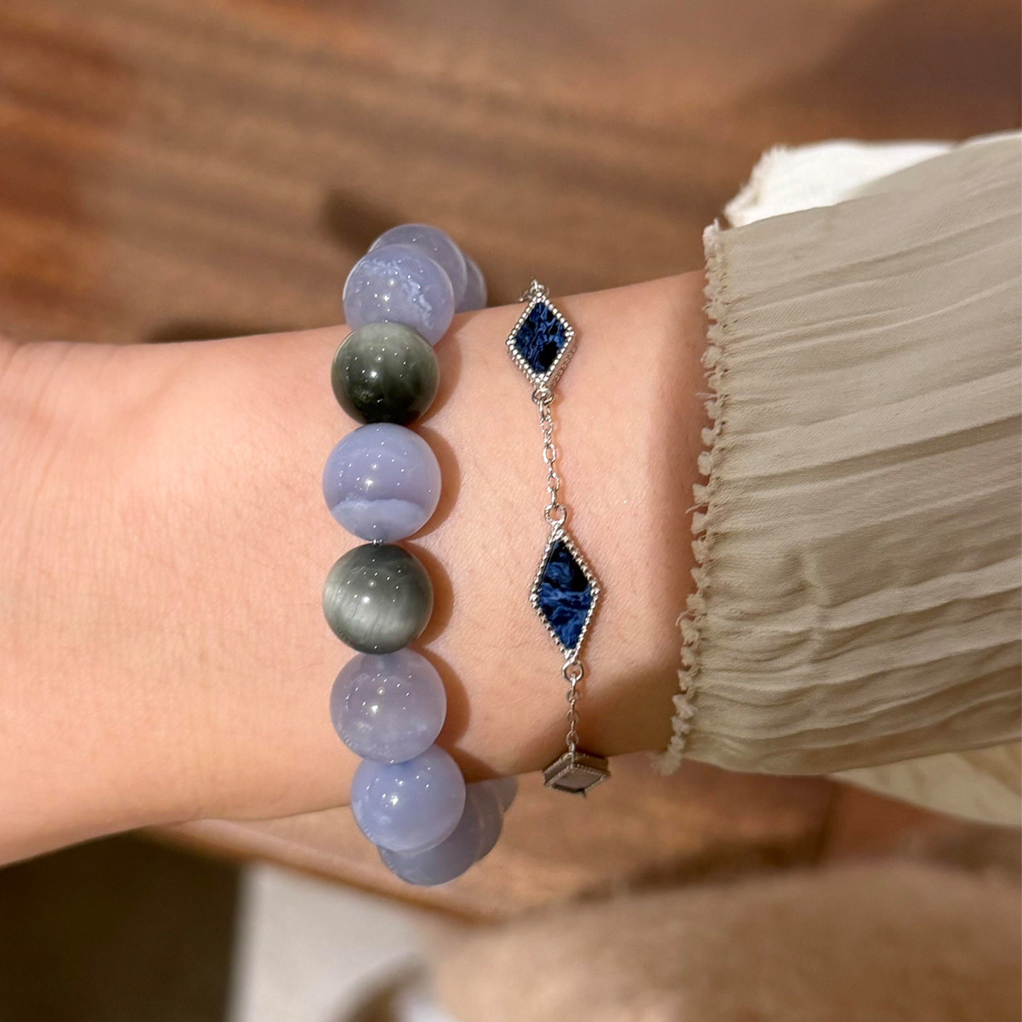 复古蓝色双面龙纹菱形手链女款轻奢小众精致2025新款气质独特手饰