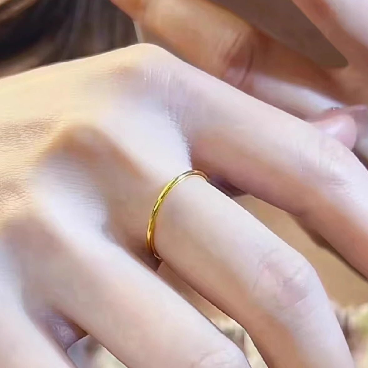 正品三生三世素圈足黄戒指古法指环999金包银男女士情侣款一对戒