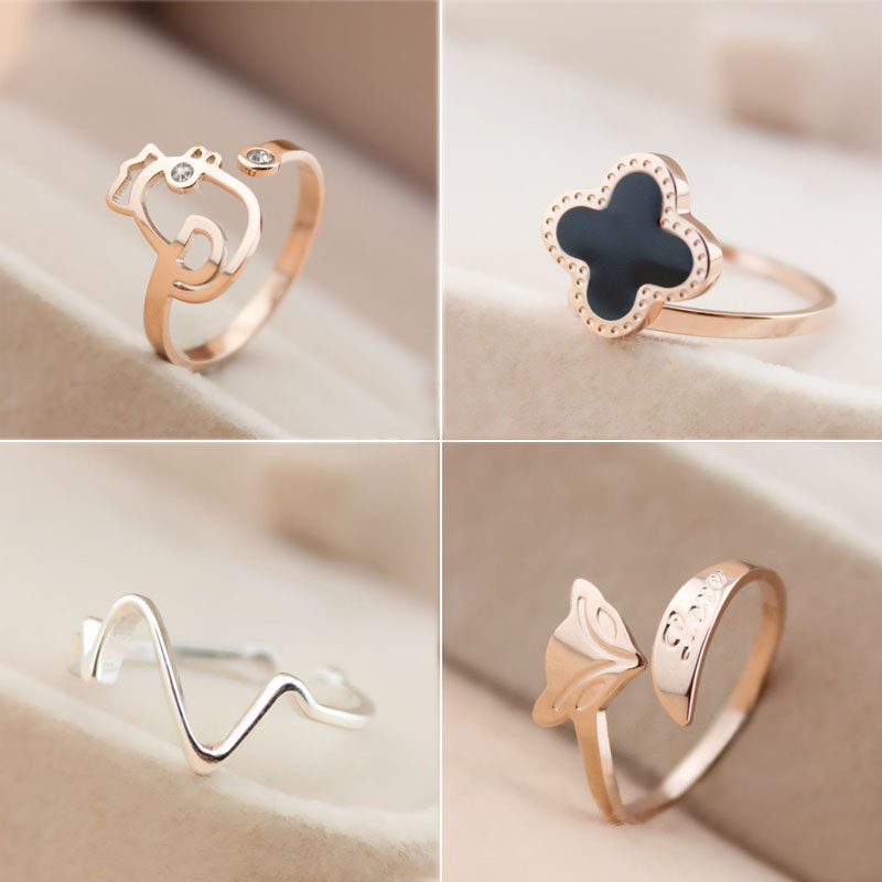 简约戒指女时尚个性小众设计钛钢18k玫瑰金食指尾戒小指ins潮网红