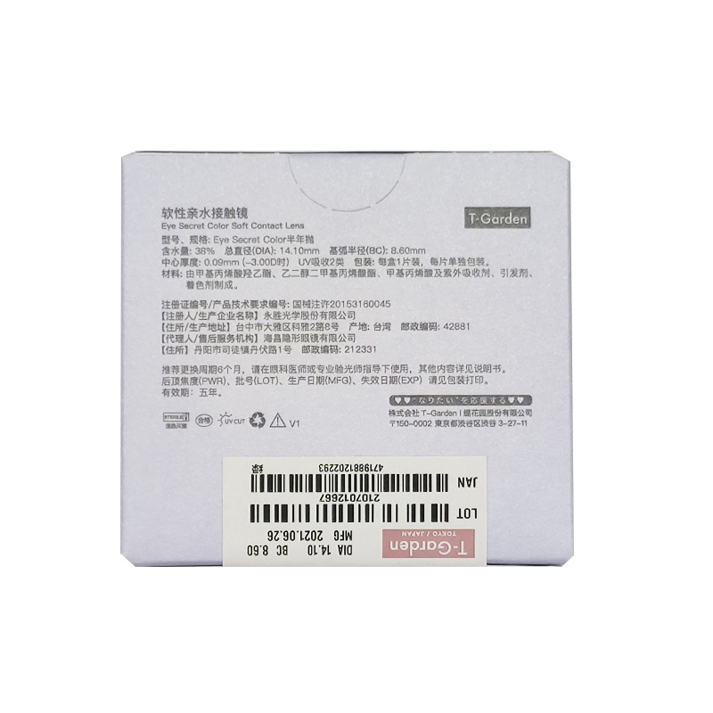 T-Garden日本美瞳半年抛chusme彩色隐形眼镜正品大小直径1片