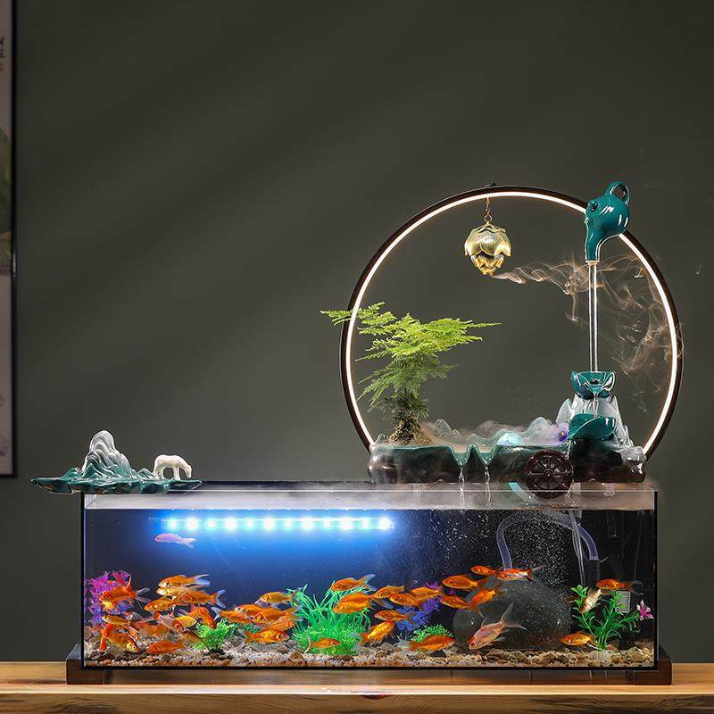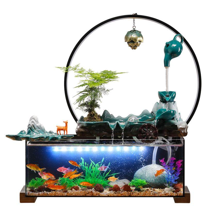 流水摆件办公室桌面鱼缸客厅景观水循环生财鱼缸开 业礼物自带过