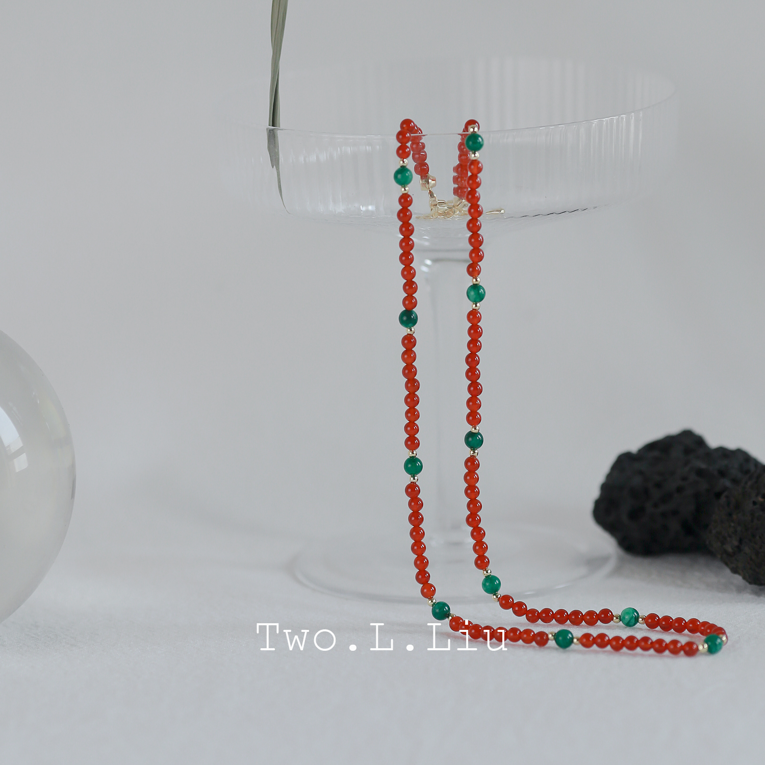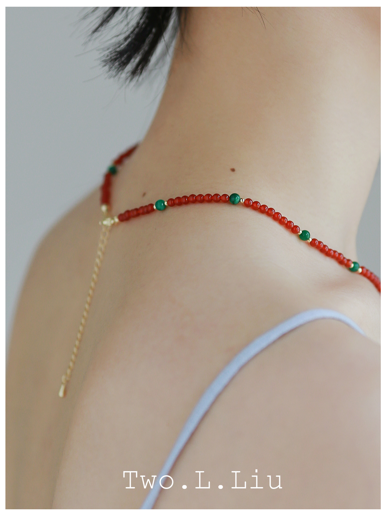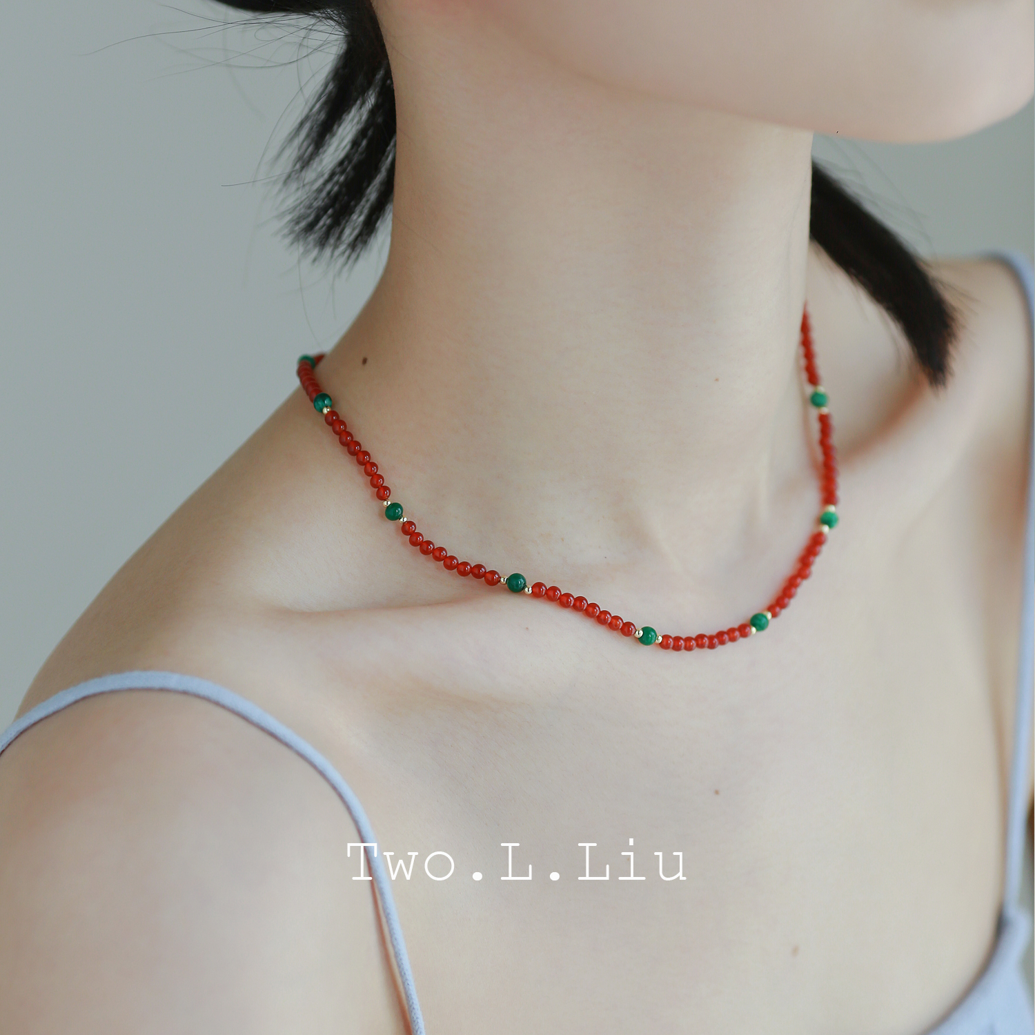 Two.L.Liu 红色项链女人造玉石新中式国潮超细原创个性显白锁骨链