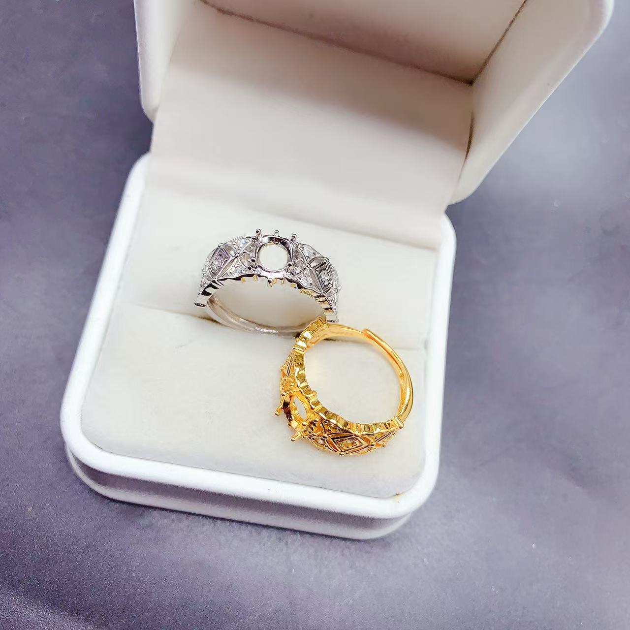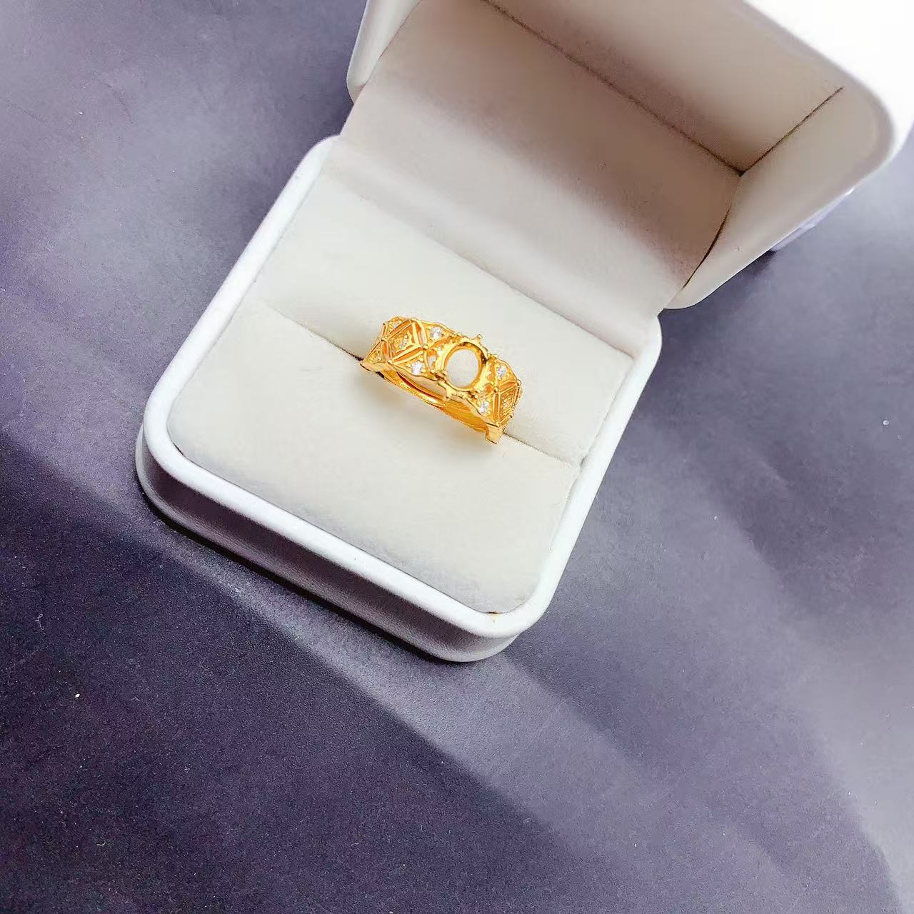 新品925银镀金色白色戒指空托椭圆形5x6mm可镶嵌各种宝石玉石活口