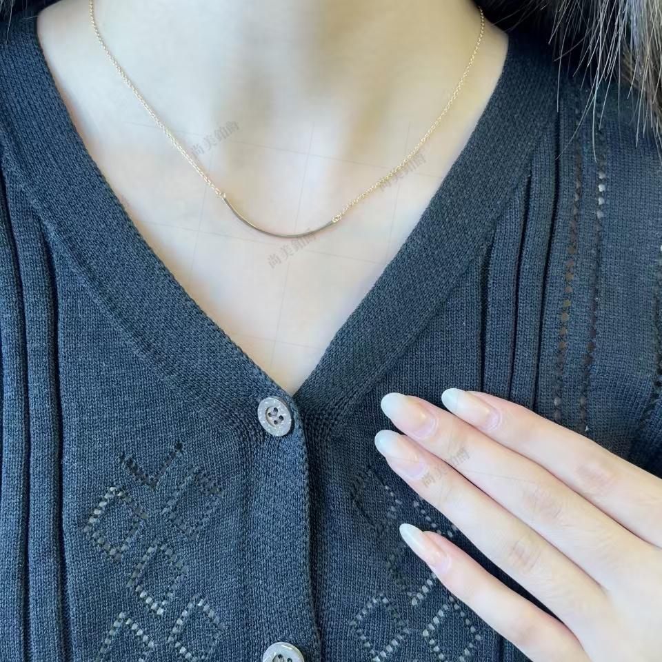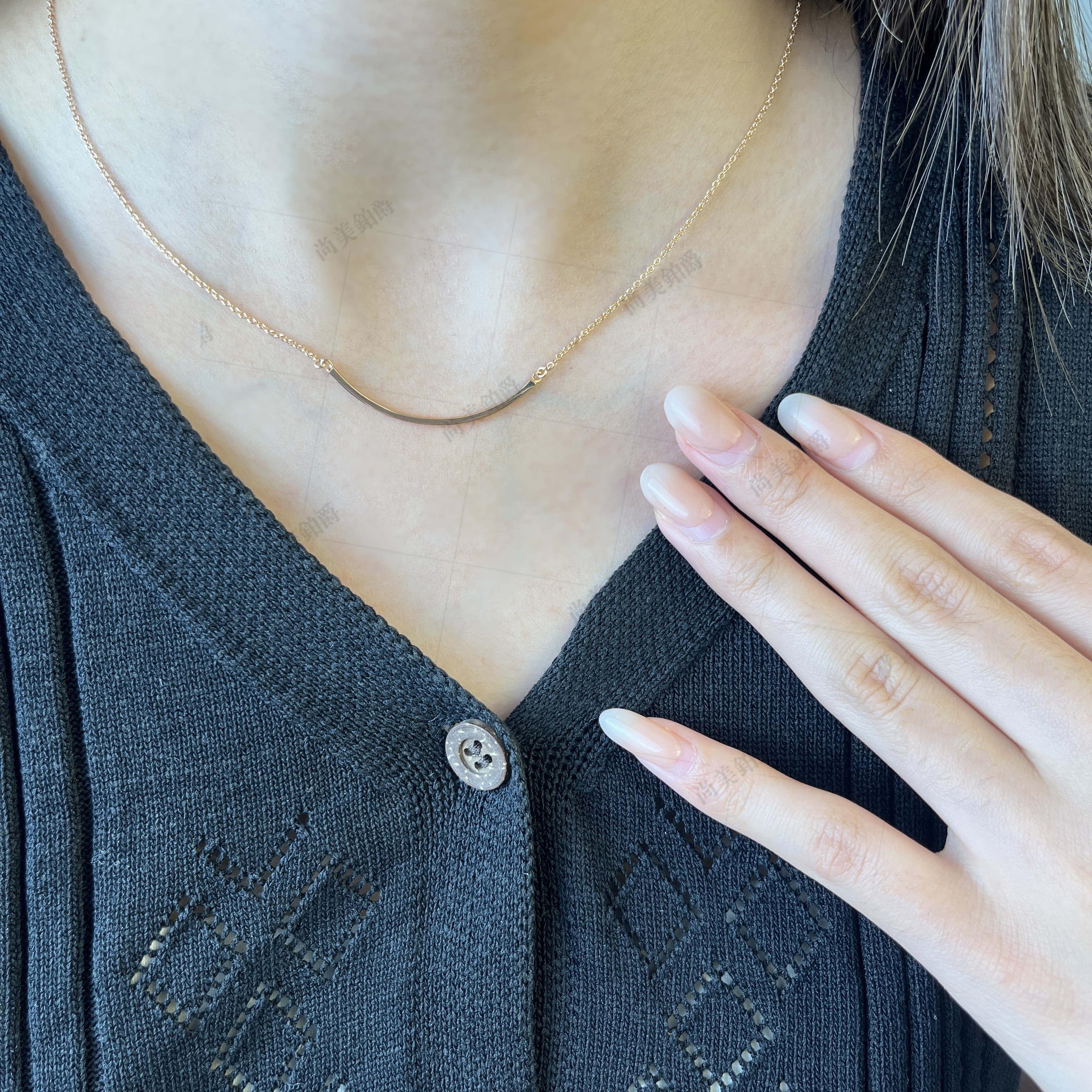 笑脸项链女18k玫瑰金微笑满钻轻奢高级彩金赵露思同款小号锁骨链