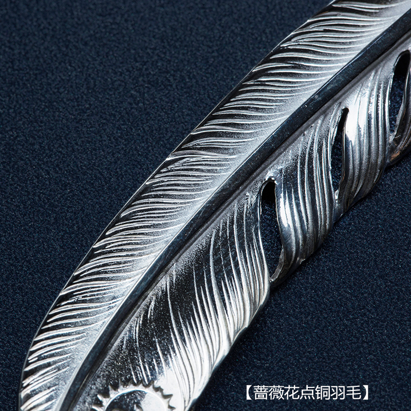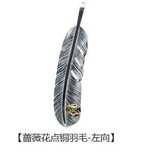 手工高桥吾朗单独羽毛吊坠925纯银蔷薇花点铜羽毛