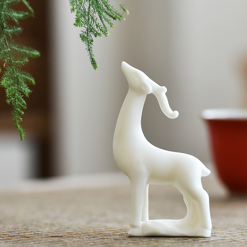 陶瓷迷你动物小鹿微景观流水器配件茶道桌面盆景园艺车载装饰配件