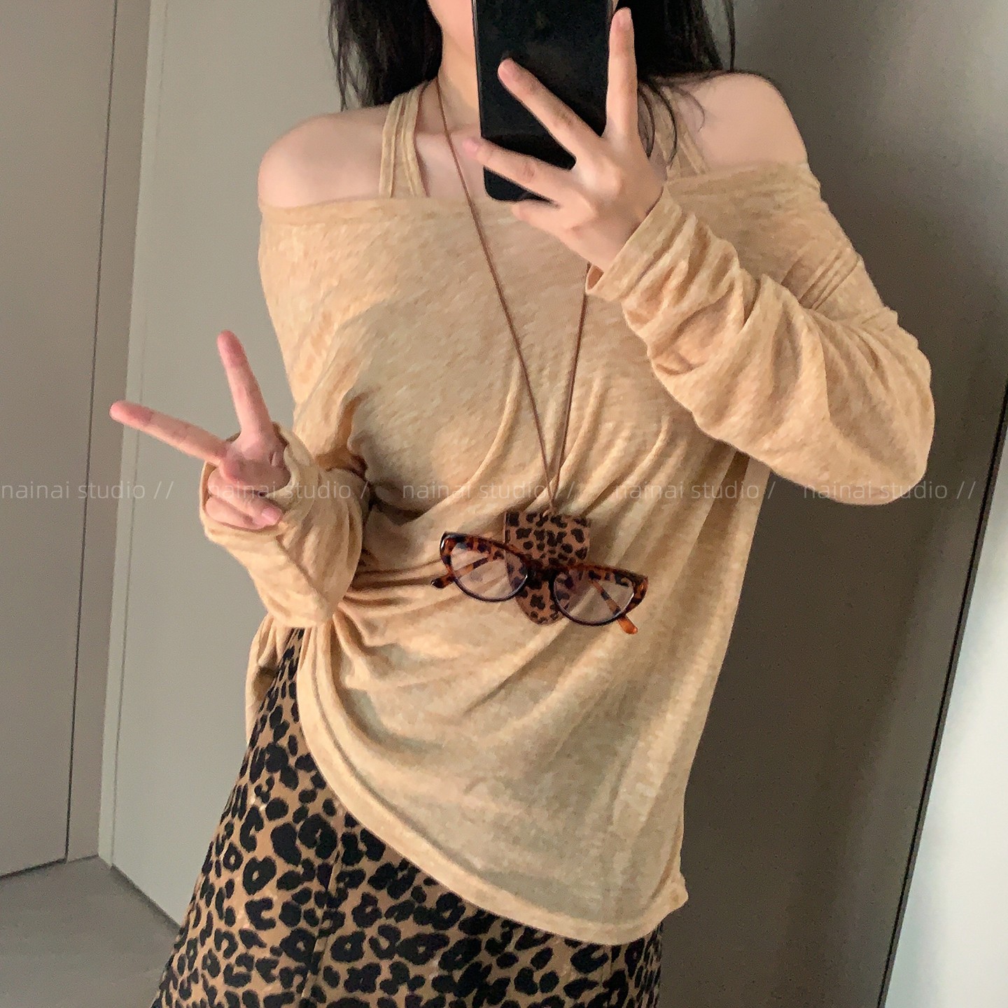 豹纹系列!眼镜挂绳+牛角包~Y2K千禧辣妹风挂脖项链毛衣链卫衣链