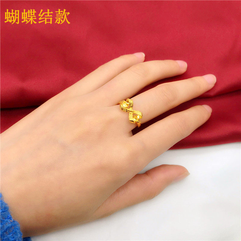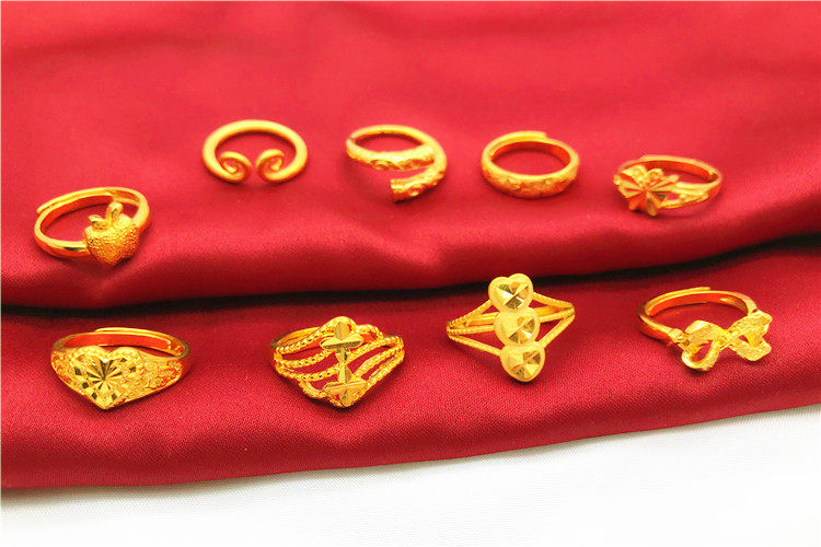 新款24k镀金戒指女 活口简约仿黄金越南沙金饰品欧币手饰久不掉色