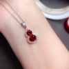天然鸽血红色石榴石吊坠女s925纯银葫芦款招财纳福红色宝石时尚