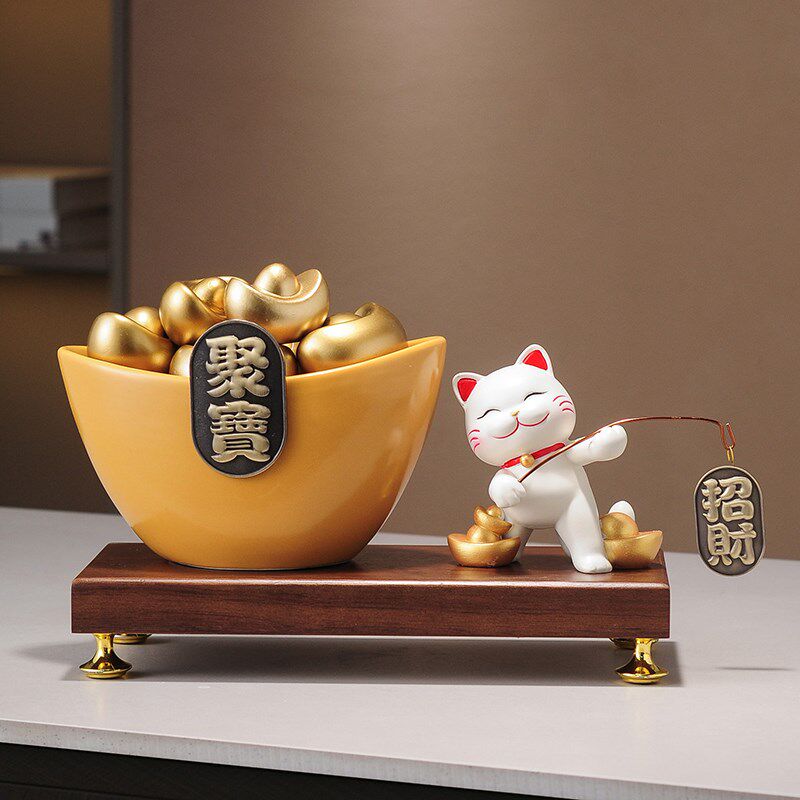 日进斗金摆件元宝招财猫装饰客厅办公室酒柜高档乔迁新居开业礼物