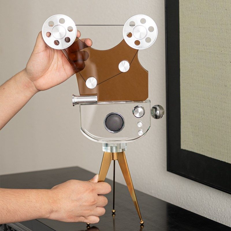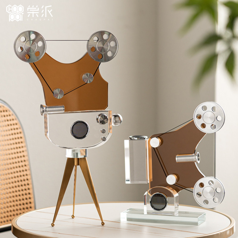 轻奢复古怀旧电影放映机水晶摆件客厅样板间酒店会所民宿软装饰品