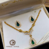 Vintage复古董首饰ROMAN祖母绿色蓝色奥地利水晶项链耳钉套装