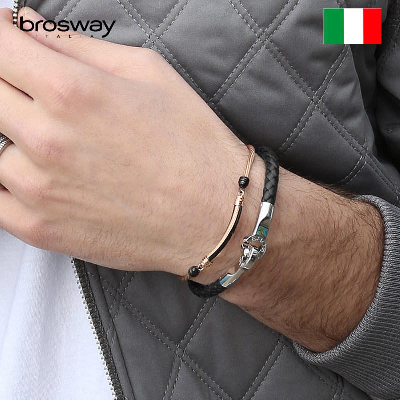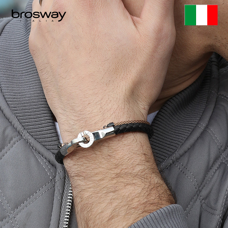 brosway欧美手工编织潮简约牛皮绳男士手链小众生日礼物送男友