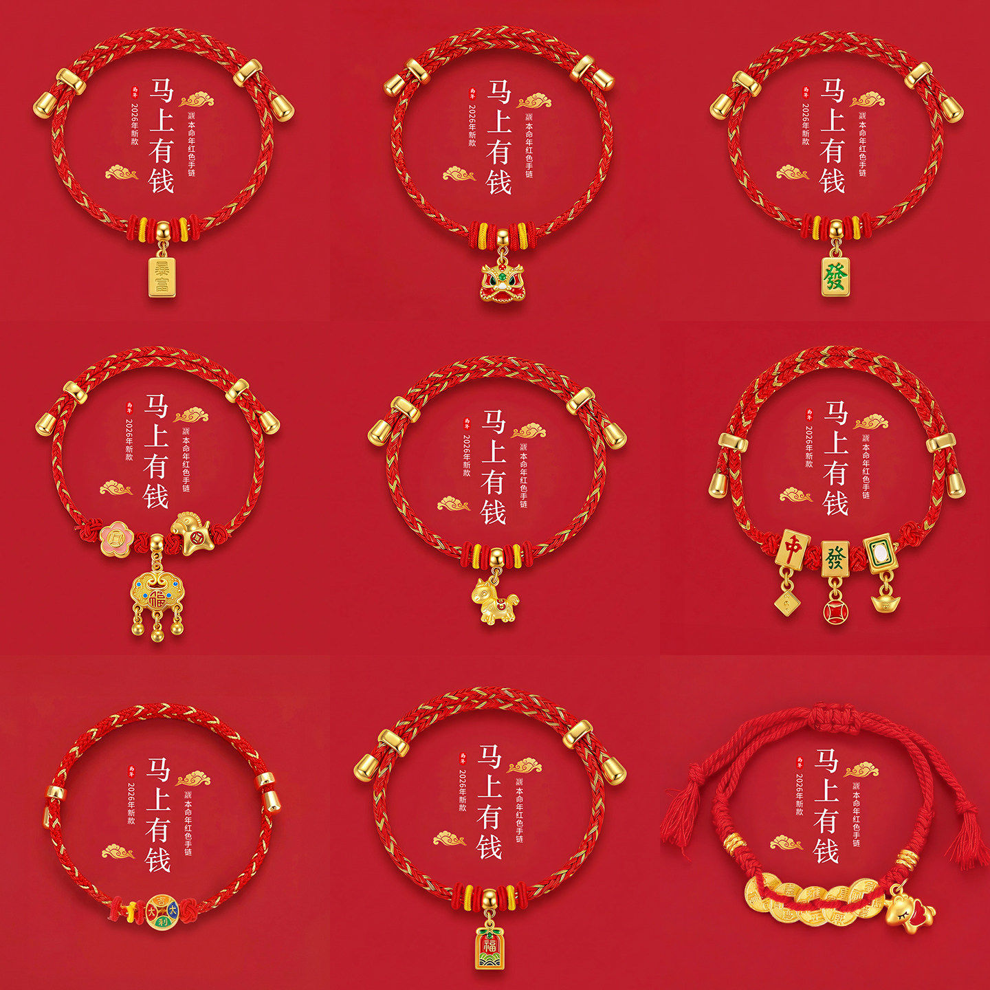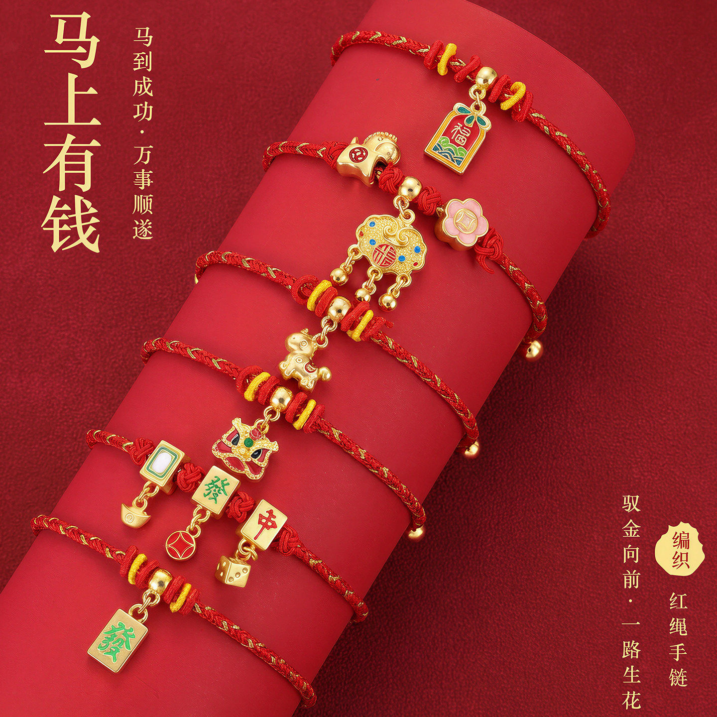 儿童马年本命年手链红绳生肖马金色编织新年礼物编绳手绳红色吊坠
