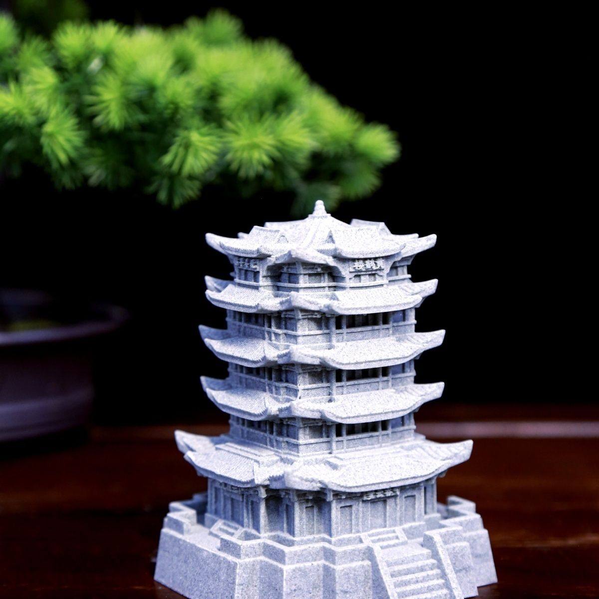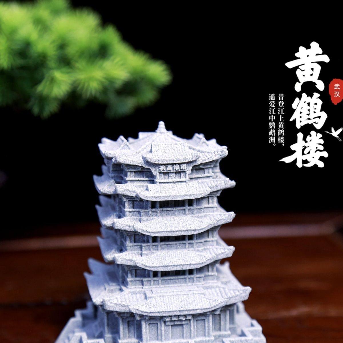 青砂石摆件精致还原古建筑黄鹤楼鱼缸假山微景观