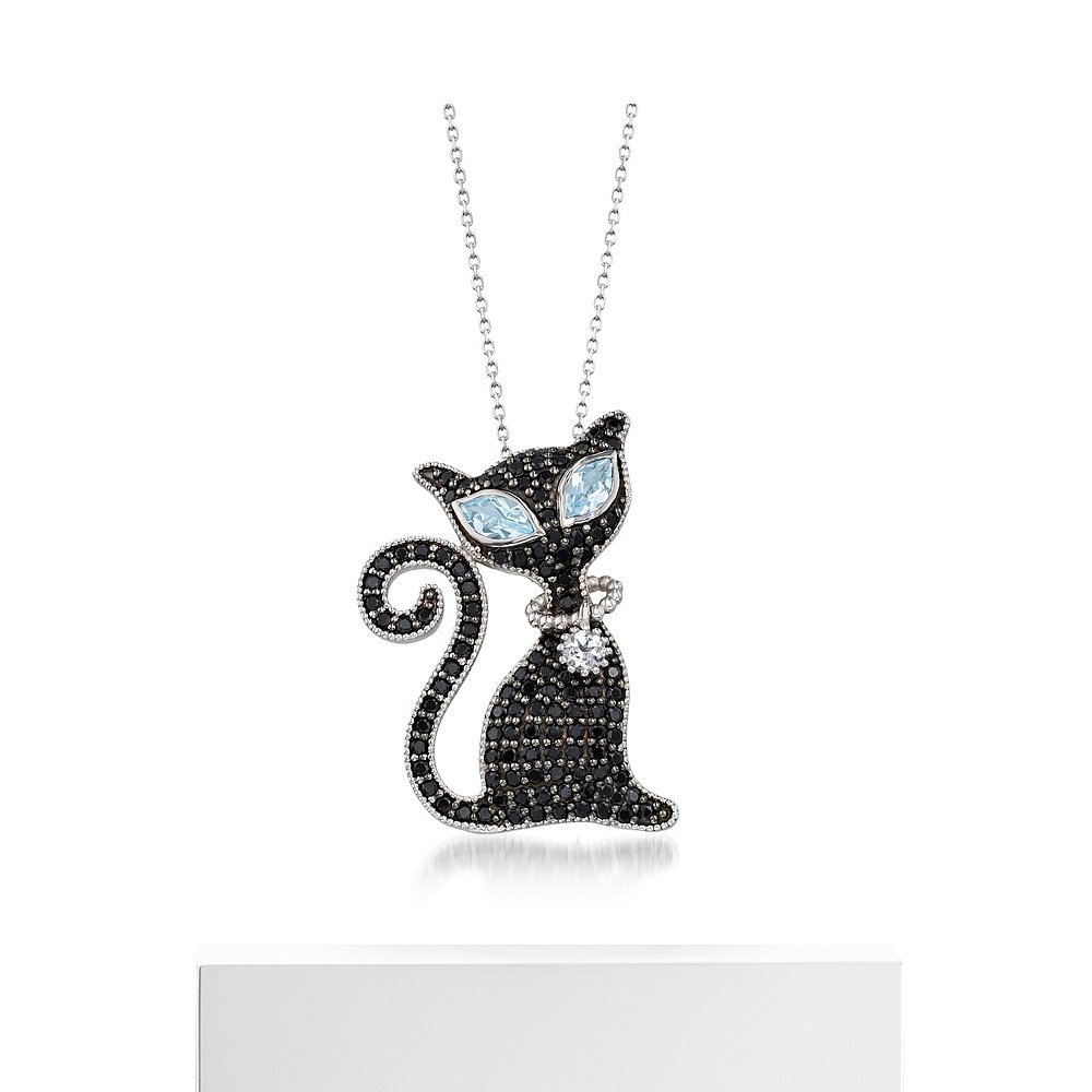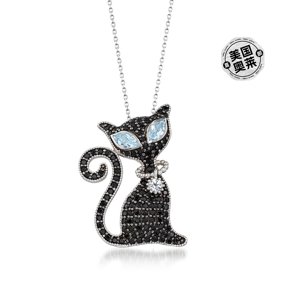 自营 Ross-Simons 黑色尖晶石和蓝白色托帕石猫形别针吊坠项链(-