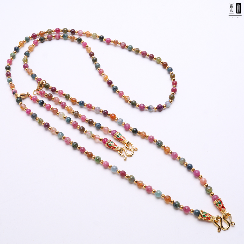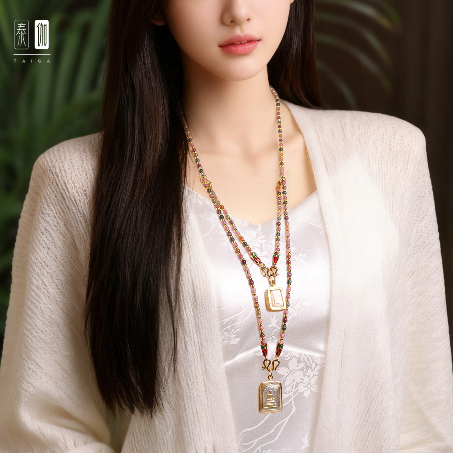泰伽泰伽天然碧玺项链链原创泰国佛牌链子唐卡翡翠玉石黄金挂链