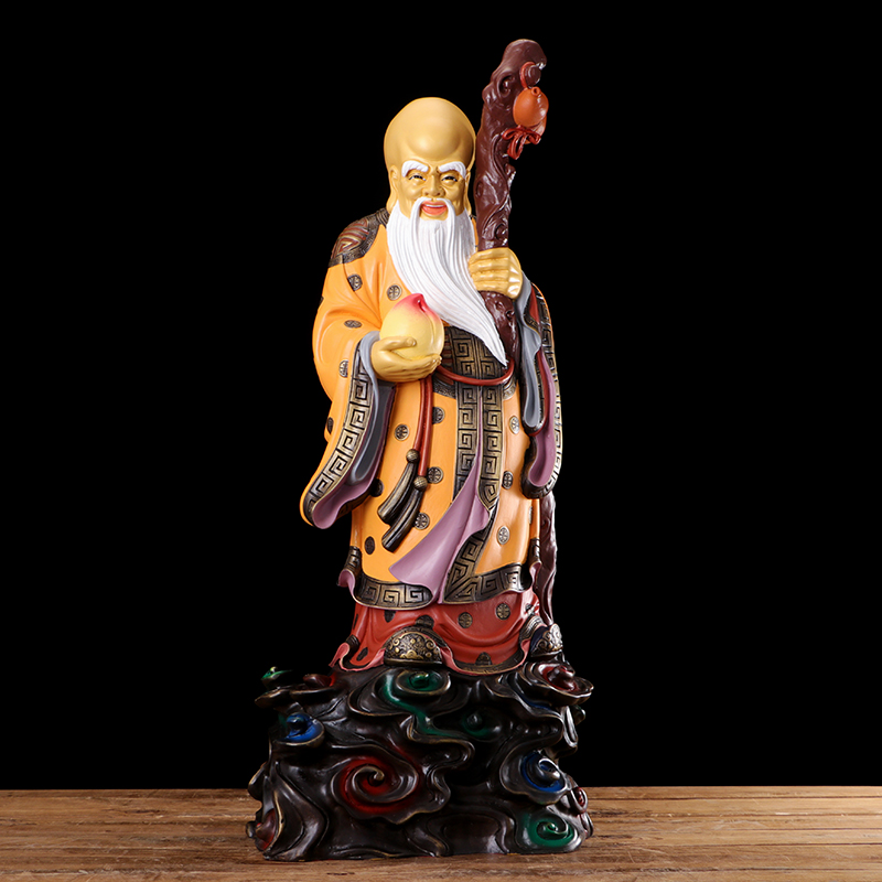 圆通佛具福禄寿三星神像纯铜彩绘寿星公像财神爷家居客厅风水摆件