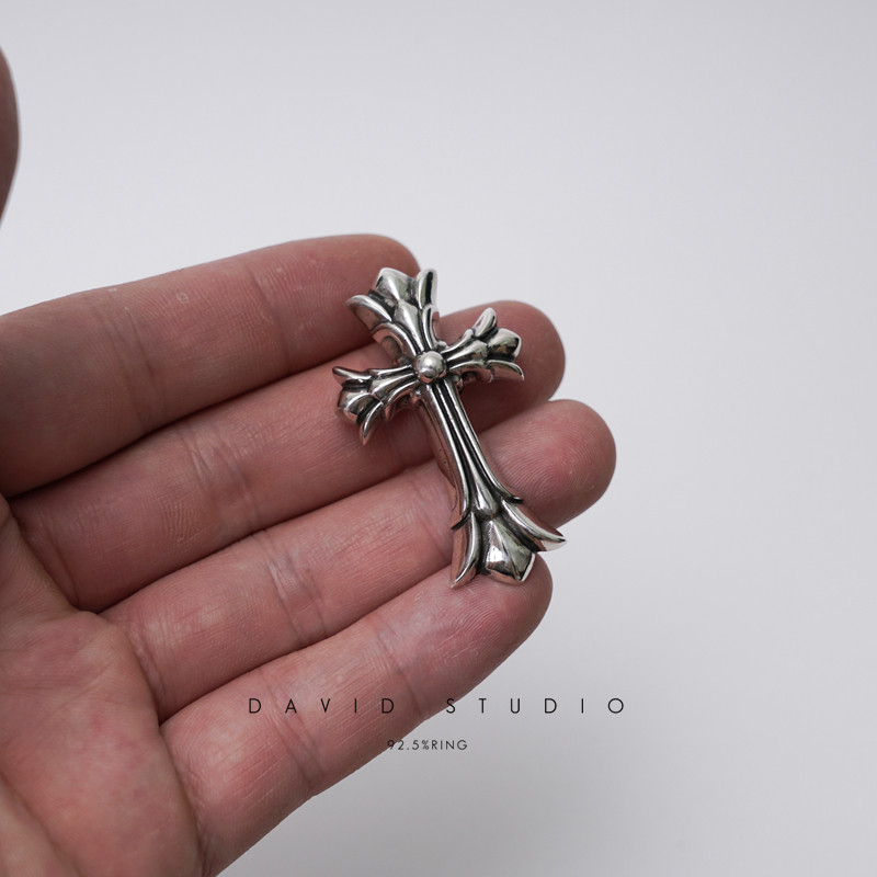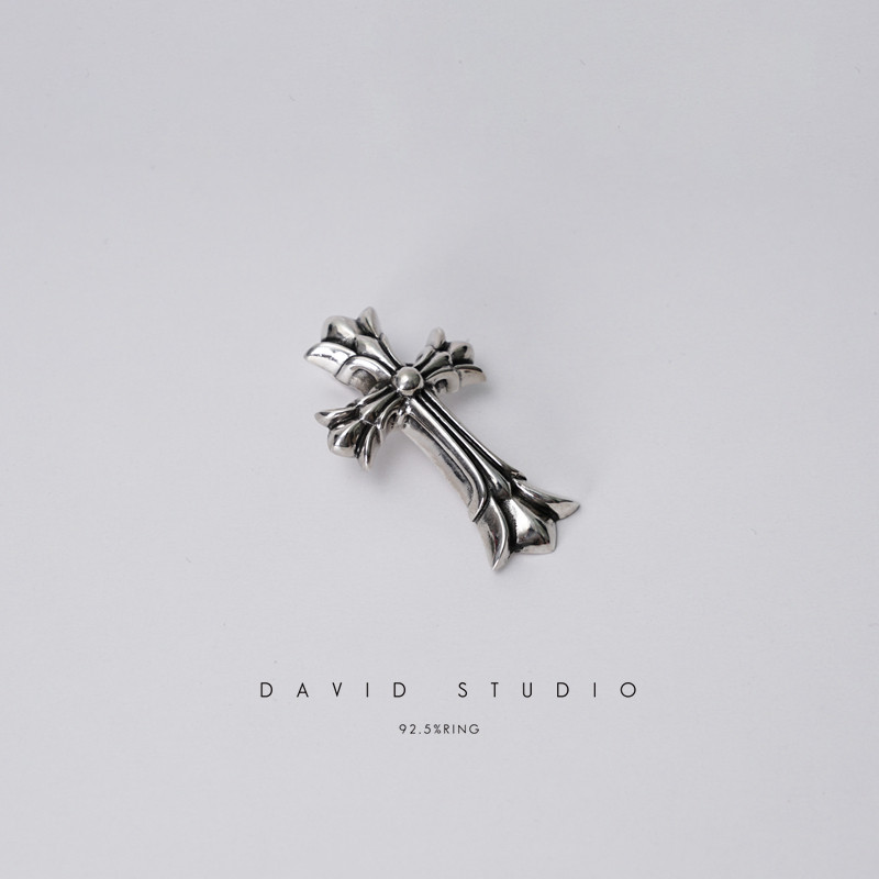 David studio925纯银双层十字架做旧吊坠朋克机车复古风男女同款