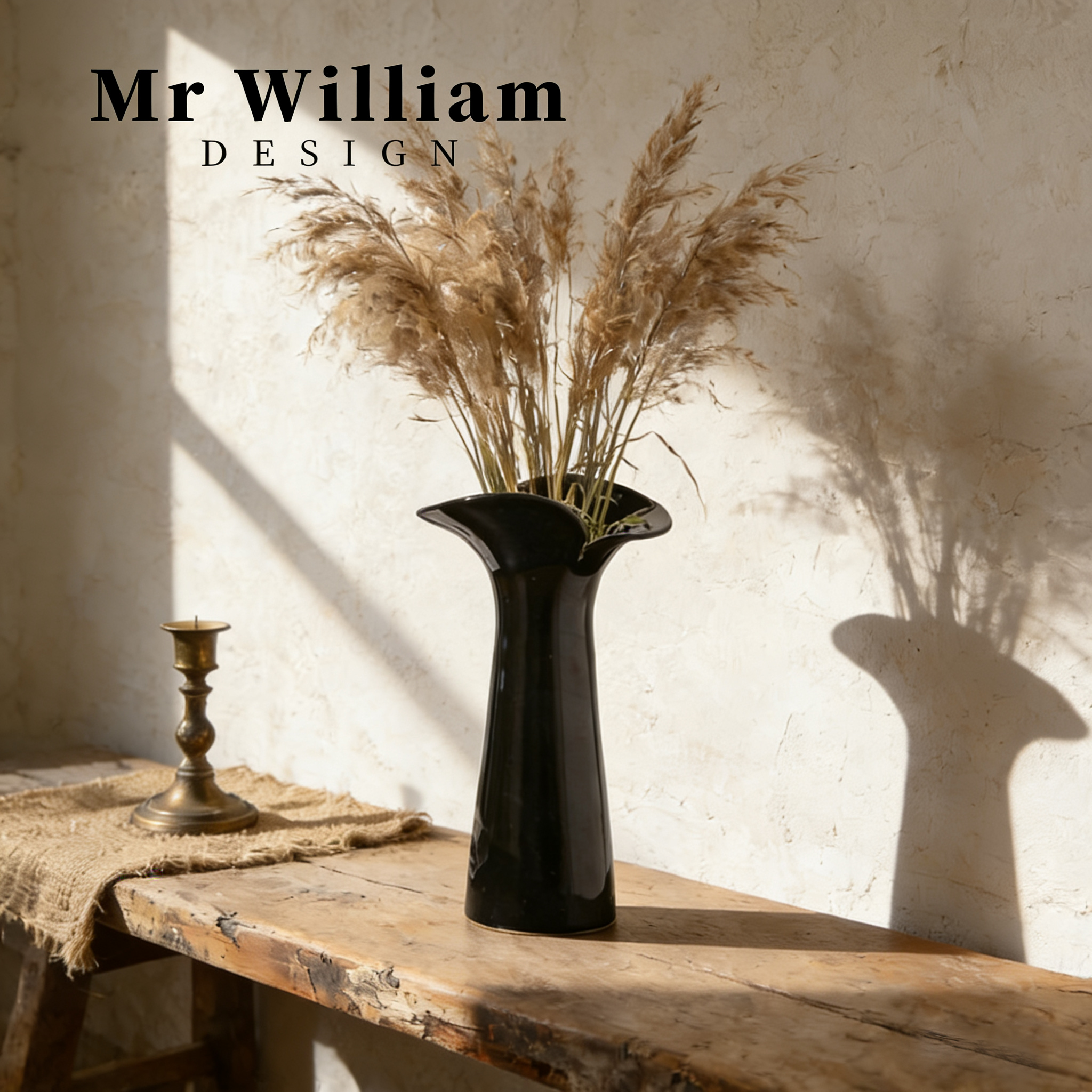 MR William 侘寂风黑色陶瓷花瓶家居装饰摆件小众现代客厅插花器