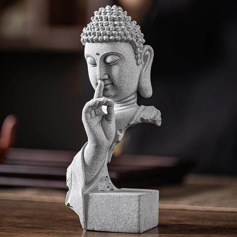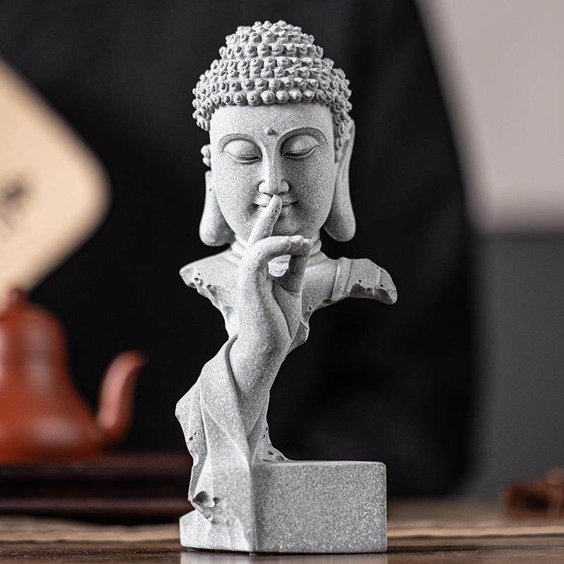 中式释迦牟尼佛像摆件青砂石鱼缸造景园艺桌面茶室装饰品如来茶宠