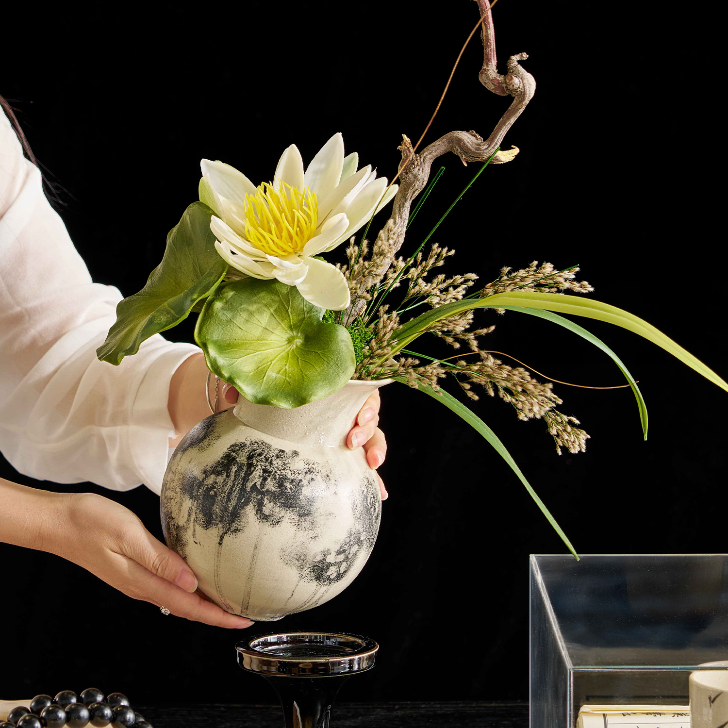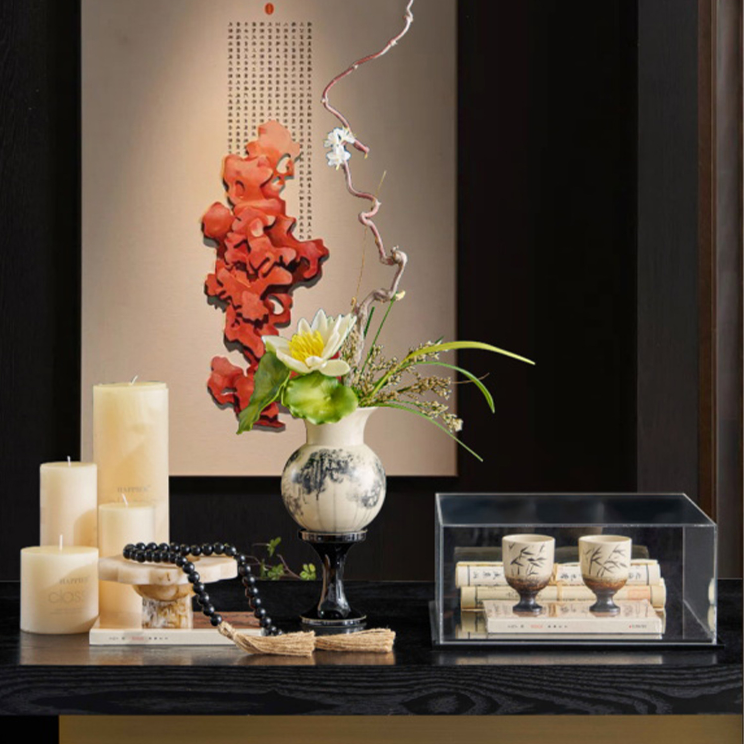 新中式软装组合手绘陶瓷花器展厅会所客厅玄关柜装饰摆件场景搭配