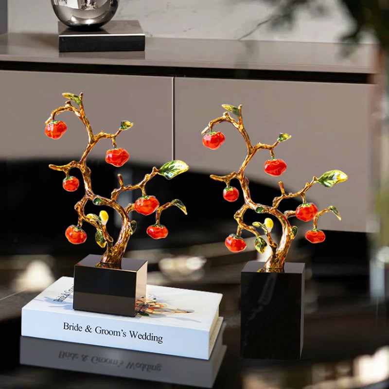 事事如意柿子摆件新中式客厅玄关酒柜电视柜装饰品乔迁新居