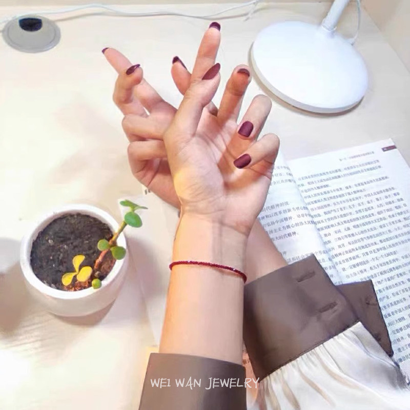 细如红绳 本命年红尖晶手链转运招财14k包金红色手串超闪洗澡可戴