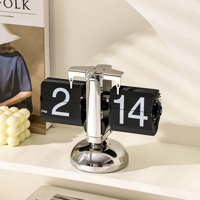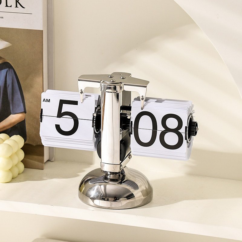 创意复古自动翻页时钟摆件家居客厅办公室桌面机械电子钟表装饰品