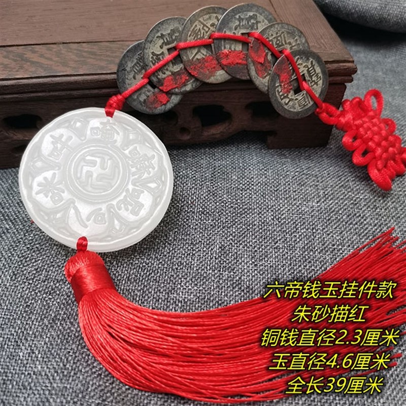 家居饰品观音灵感玉朱砂开元通宝铜钱挂件五帝六帝钱白玉童子挂饰