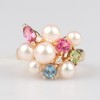「9.5新」TASAKI(塔思琦)六颗海水珍珠彩宝石钻石戒指K18黄金53号