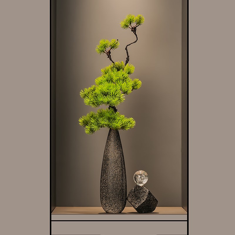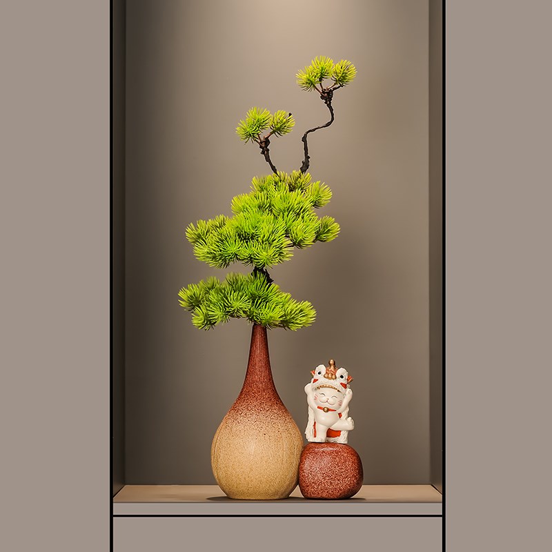 入户门玄关招财猫石来运转细长竖高花瓶摆件高级感客厅陶瓷装饰品