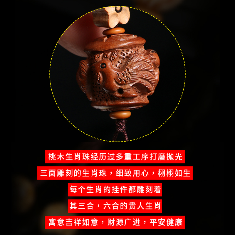 桃木三合六合钥匙扣2026马年十二生肖鼠牛虎兔龙马羊猴鸡狗猪吊坠